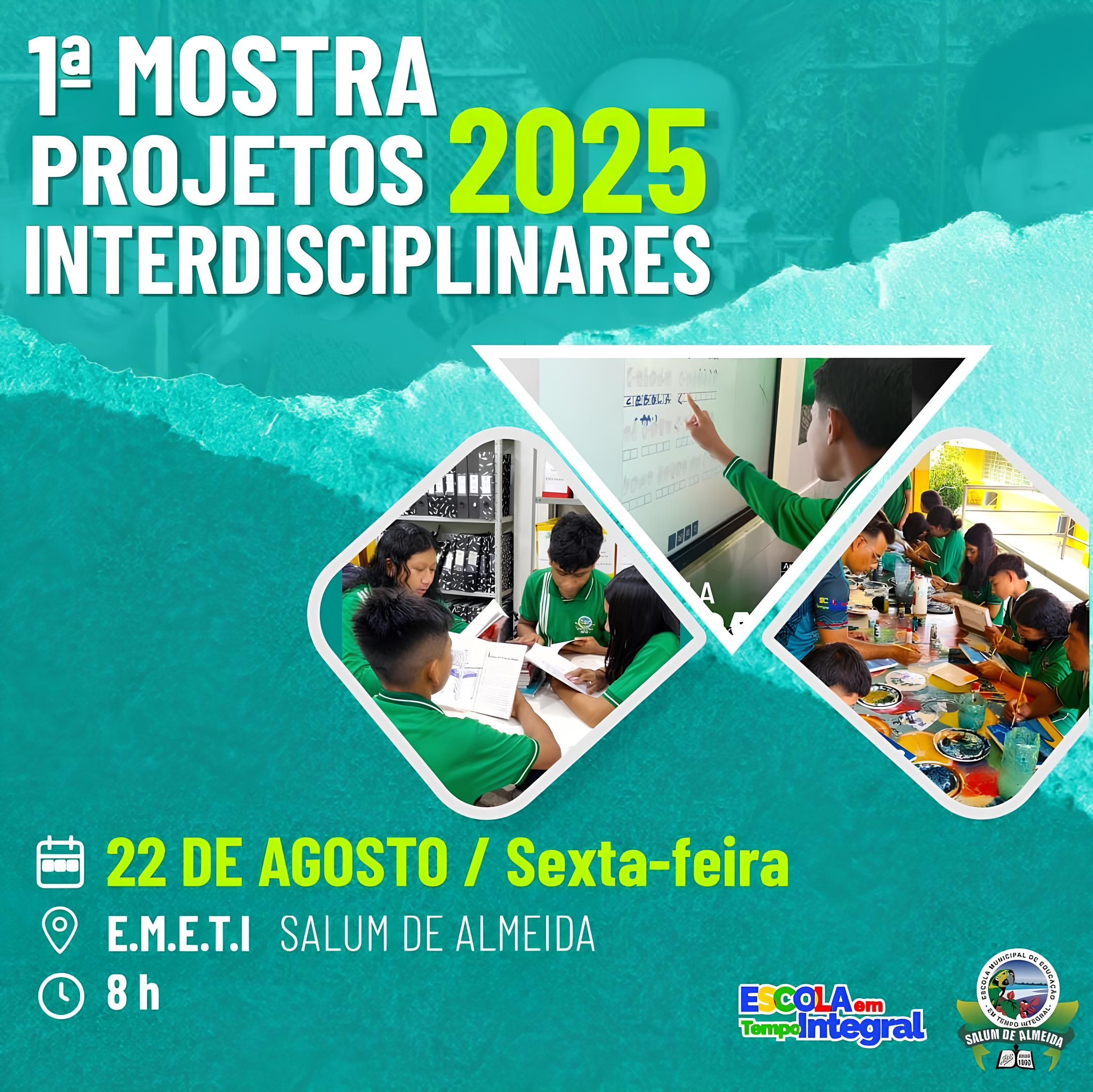No próximo dia 21 de agosto de 2025, a Escola Municipal em Tempo Integral Salum de Almeida realizará a sua Primeira Mostra de Projetos Interdisciplinares, um evento que promete reunir estudantes, professores e a comunidade escolar em um momento de aprendizado, criatividade e troca de experiências. A mostra contemplará a apresentação de todos os projetos desenvolvidos na escola desde o início do ano letivo, valorizando o esforço coletivo de alunos e educadores que, ao longo dos meses, uniram diferentes disciplinas em atividades práticas e inovadoras.Os visitantes poderão conhecer de perto iniciativas que vão desde projetos de pesquisa e produção científica até atividades culturais, tecnológicas e ambientais, todas construídas com dedicação ao longo do semestre. A expectativa é de que a Primeira Mostra de Projetos Interdisciplinares da Escola Salum de Almeida se torne um marco no calendário escolar, incentivando novas edições nos próximos anos e consolidando-se como espaço de inovação e integração pedagógica.